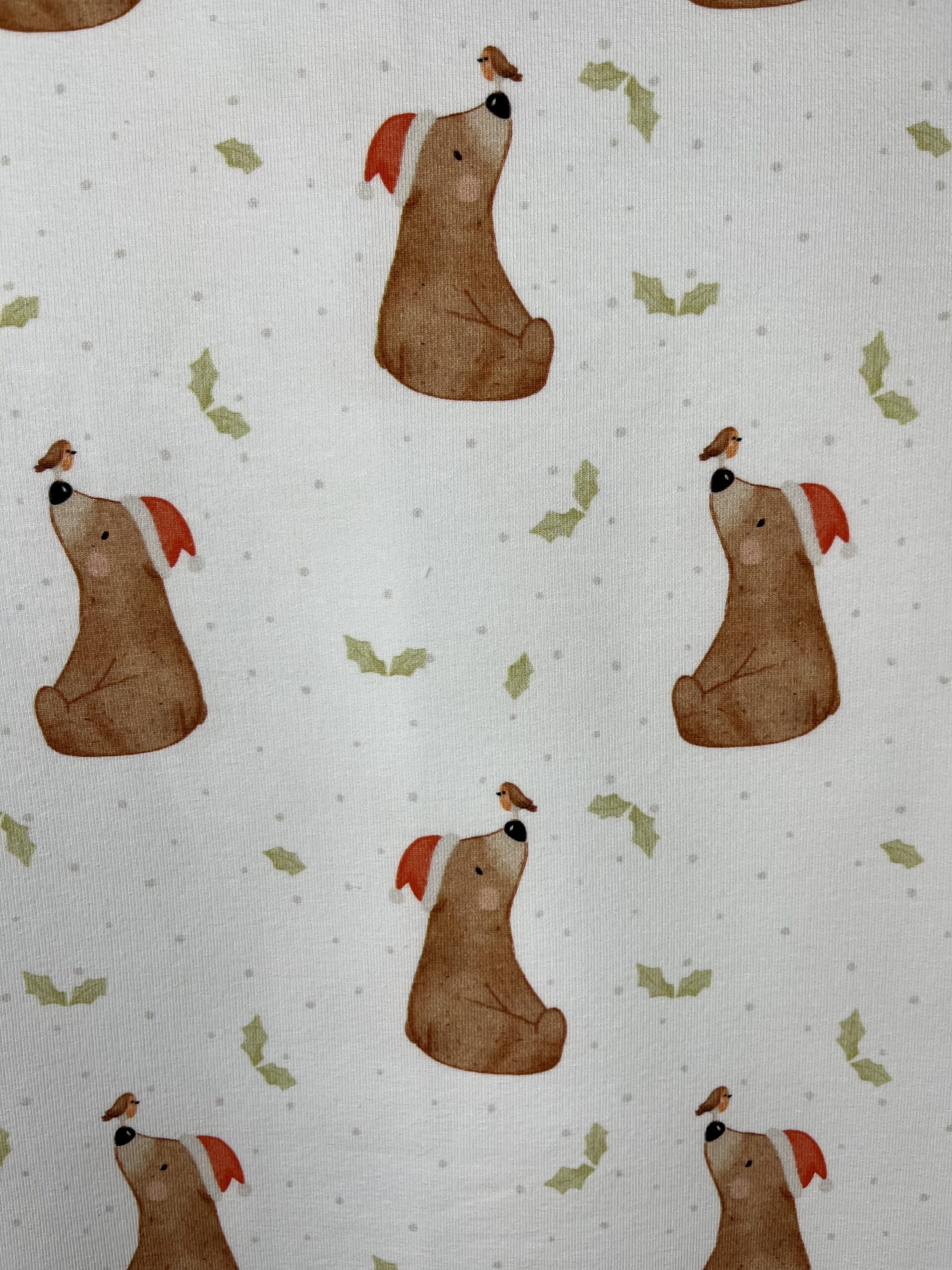 Jersey Motivstoffe «Weihnachtsbär Weiss»