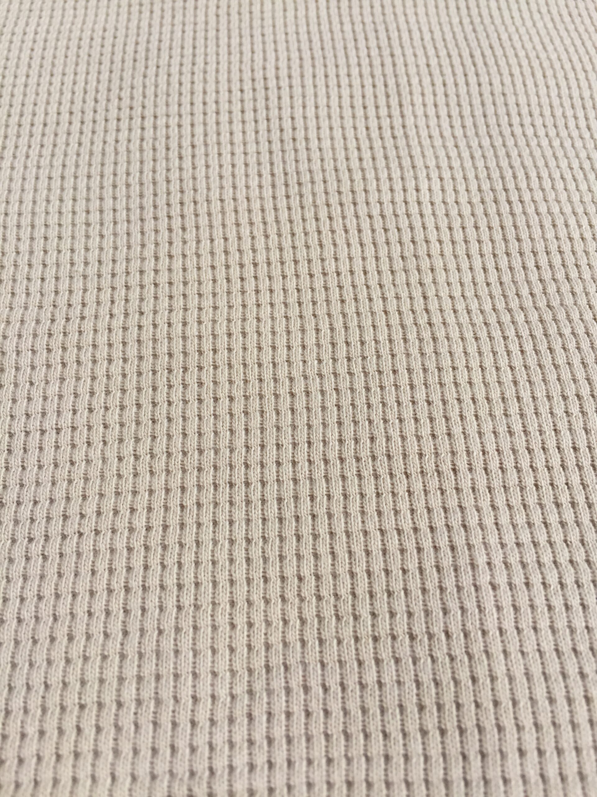 Der Waffelstrick Jersey bietet einen angenehmen Tragekomfort und weist ein elastisches, atmungsaktives und dehnbares Material auf. Seinen unverwechselbaren Look verdankt dieser Stoff der gestrickten Waffelstruktur.