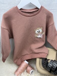 Kleider «Sweater – Waffelstrick Jersey Mauve – gestickte Eule» Grösse 92